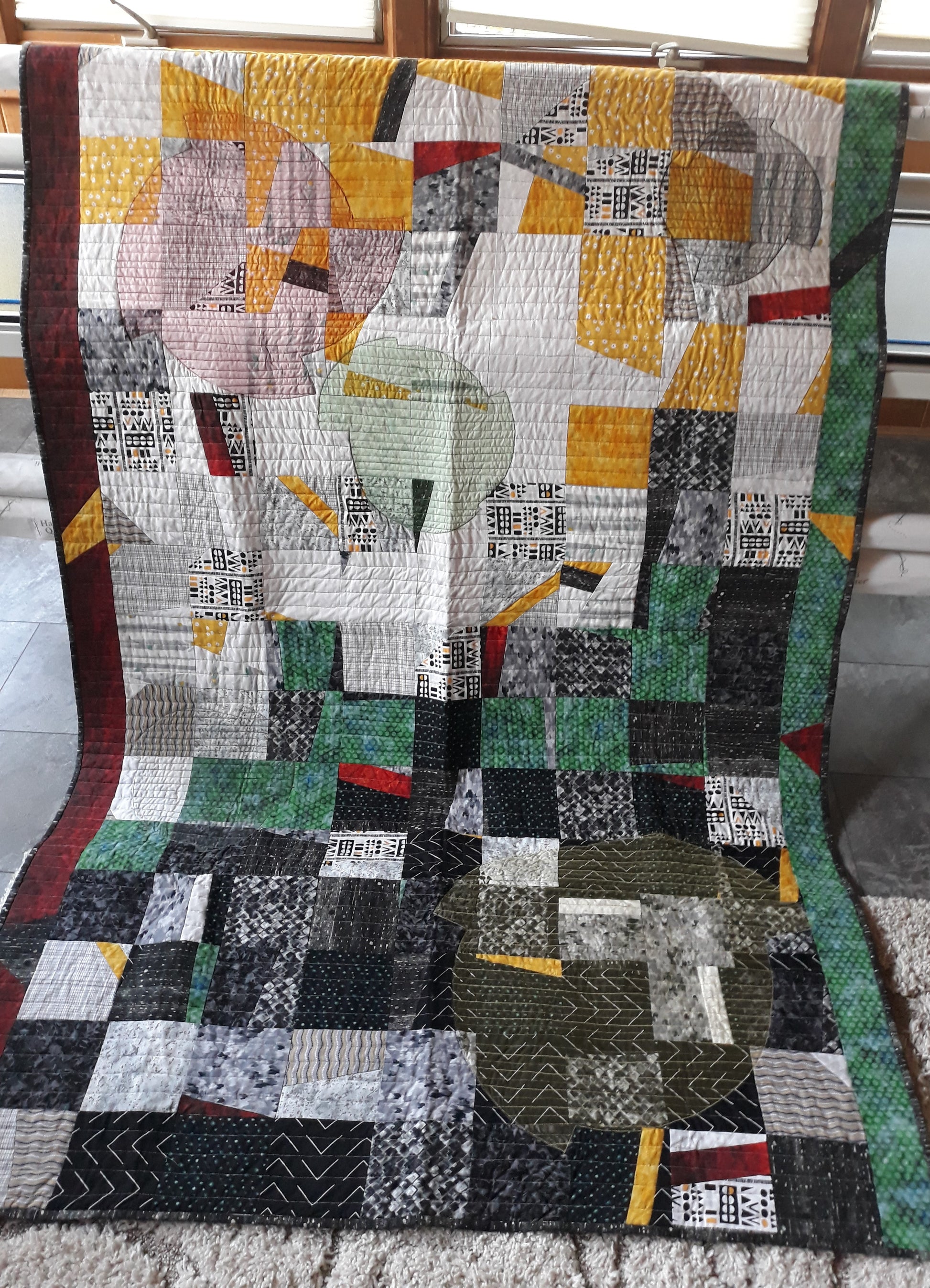 This Contemporary Abstract Fractured Quilted Wall Hanging is a one-of-a-kind quilt.