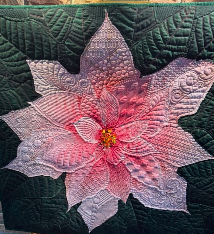 Dream Big Pink Poinsettia Quilted Wall Hanging or Table topper, approx 43 x 43 inches