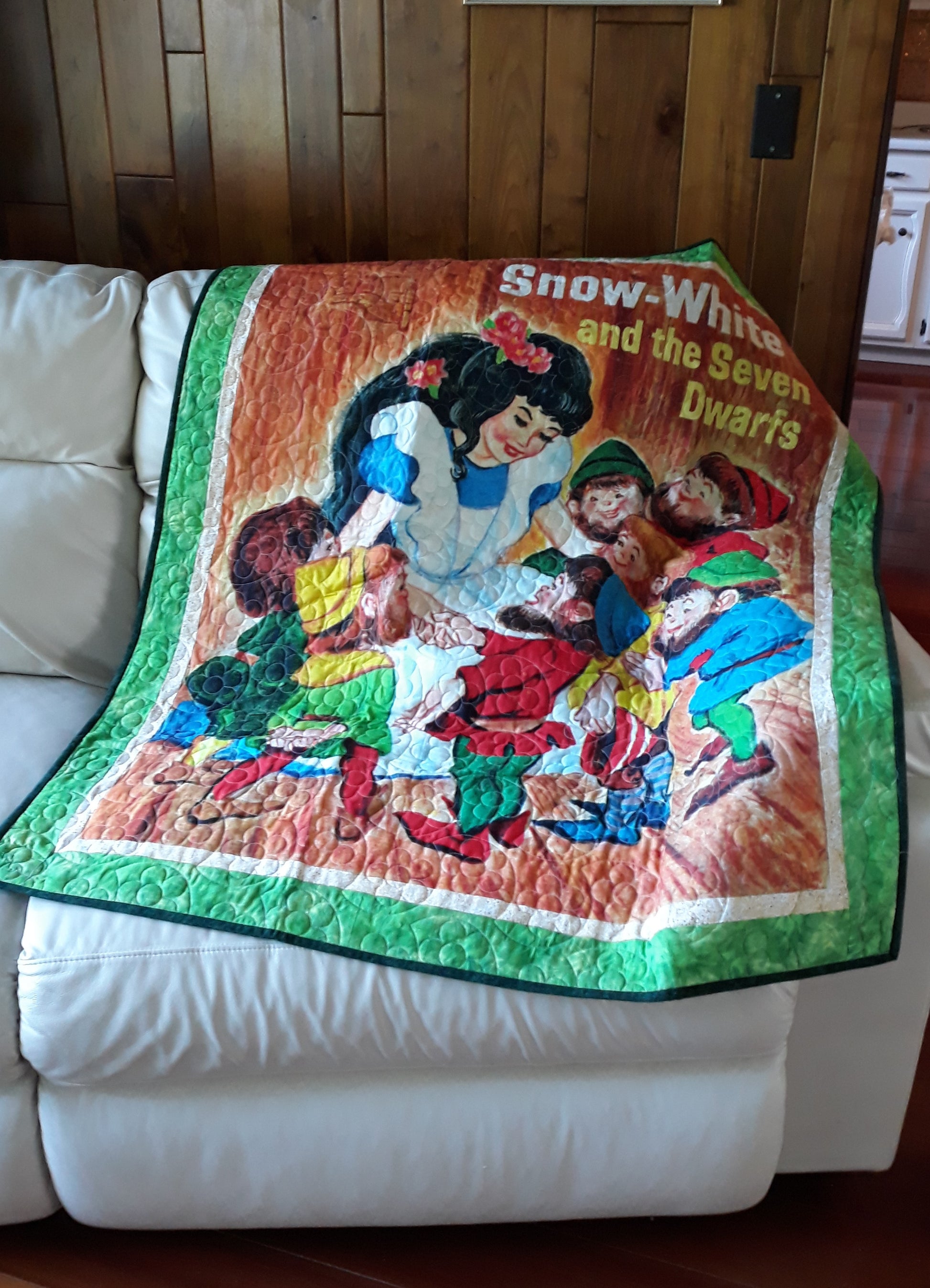Retro Vintage Golden Book look Snow White and the Seven Dwarfs - approximately 41 x 49 inches. Toddler or Baby Quilt, Wall Hanging or Playmat.