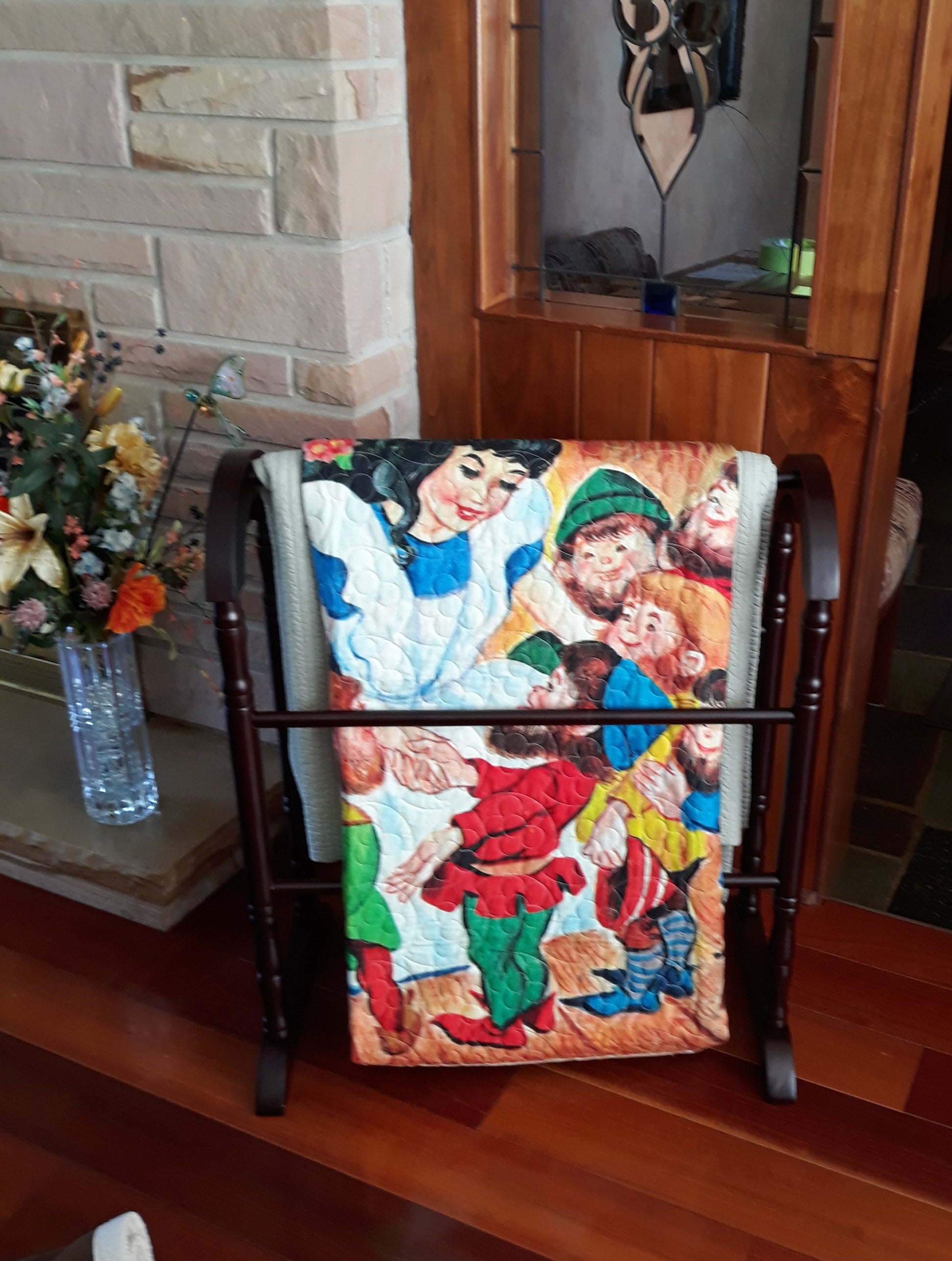 Retro Golden Book look Snow White Quilt, Wall Hanging, Playmat Seven Dwarfs approx 41 x 49 inches, Flower or Butterfly quilt pattern
