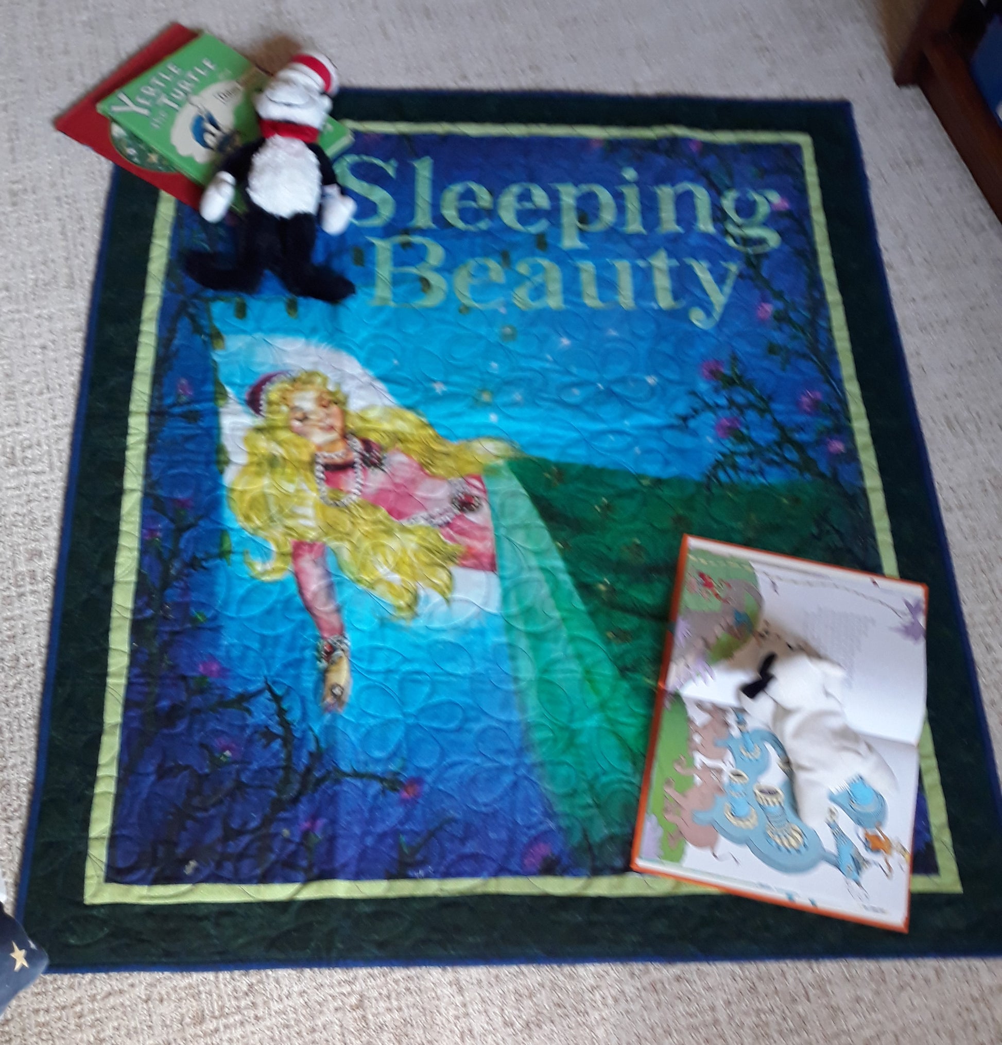 Retro Golden Book Sleeping Beauty Quilt, Wall Hanging, Playmat Baby / Toddler Size 41 x 49 inches blues w Floral Quilt Pattern
