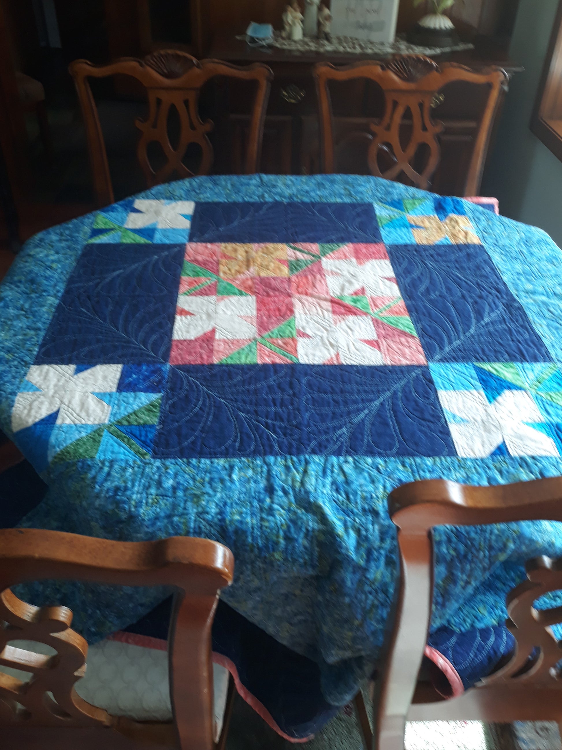 WindBlown Blossoms Floral and Geometric, approximately 64 x 80 inches (lap size, small twin, wall hanging, table topper), This unique quilt is 2-sided,, the back has a smaller set of 8 flowers.